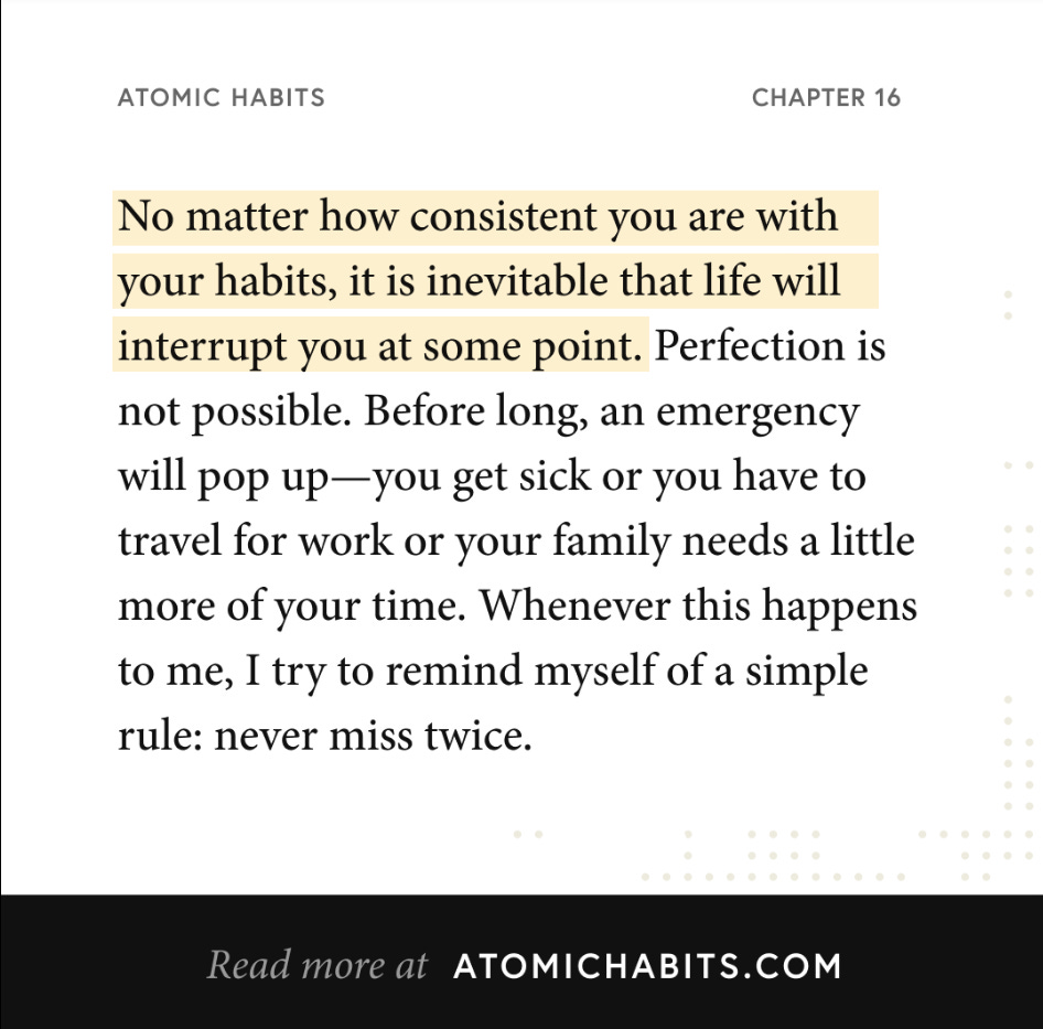 Clear’s book Atomic Habits sits nearby. It’s a great read — and one I wrote about in my August 16 edition of The Saturday List on my Substack — and one nugget has really stuck with me. This one: